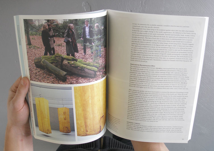 Following this project, a publication is published: The Artist Interview. For conservation and presentation of contemporary art. Guidelines and practice. This handbook provides a scenario including tips and checklists for conducting artist interviews, as well as ten sample interviews that give an insight in the (im)possibilities of an artist interview as a tool.