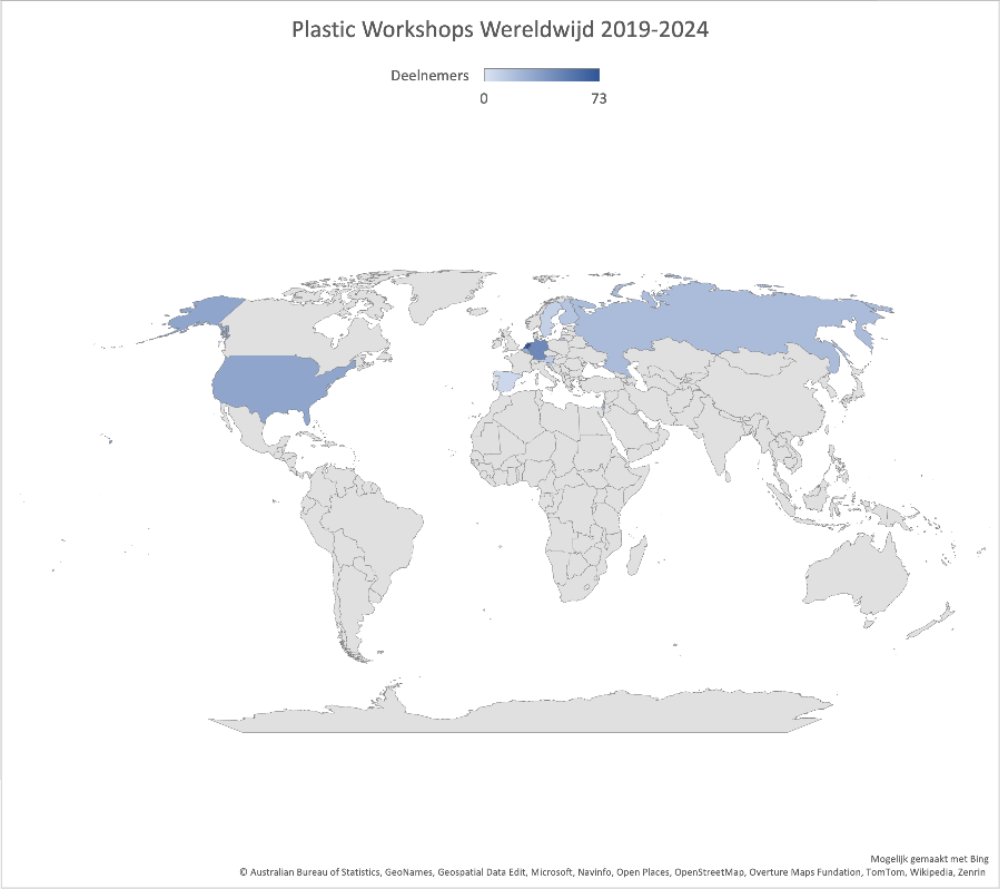 Project Plastics 5 jaar laterCarien van Aubel en Olivia van Rooijen gaven 21 workshops in 11 landen met 300 deelnemers. Van House of European History in België tot Museum for Contemporary Art in Slovenië en van het Lucas Museum of Narrative Art in de VS tot het Shenkar Archive in Israël.