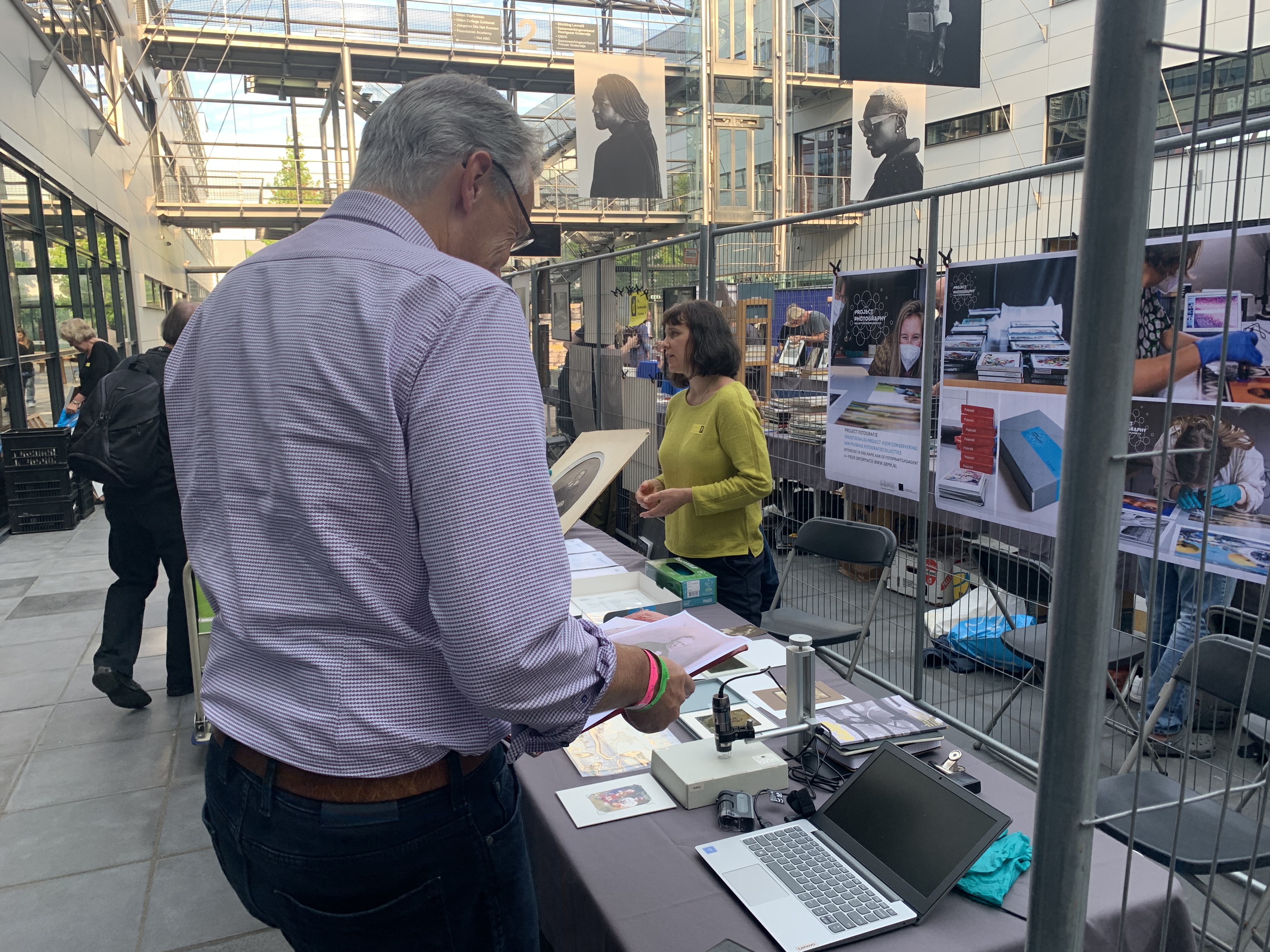 Het Fototeam, Kayleigh van der Gulik, Magdalena Pilko en Clara von Waldthausen, stond zaterdag 18 september met een stand op de beurs Dialogue - Vintage Photography in Amsterdam. Een jaarlijkse evenement met 1700 m2 vintage fotografie & fotoboeken, tal van galerieën, een dynamisch programma met workshops, artist talks en een paneldiscussie, dialoguetafels, eten, drinken en andere festiviteiten. Clara von Waldthausen hield een goed bezochte lezing. Het fototeam hielp bezoekers bij het identificeren van hun fotowerken, vertelde over Project Fotografie en beantwoordde vragen rondom conservering en bewaren van foto’s en fotografische kunstwerken. Special voor deze dag heeft de SBMK en het fototeam richtlijnen opgesteld voor het hanteren, bewaren en tentoonstellen van fotowerken. Deze waren gratis mee te nemen en zijn hier ook te downloaden.