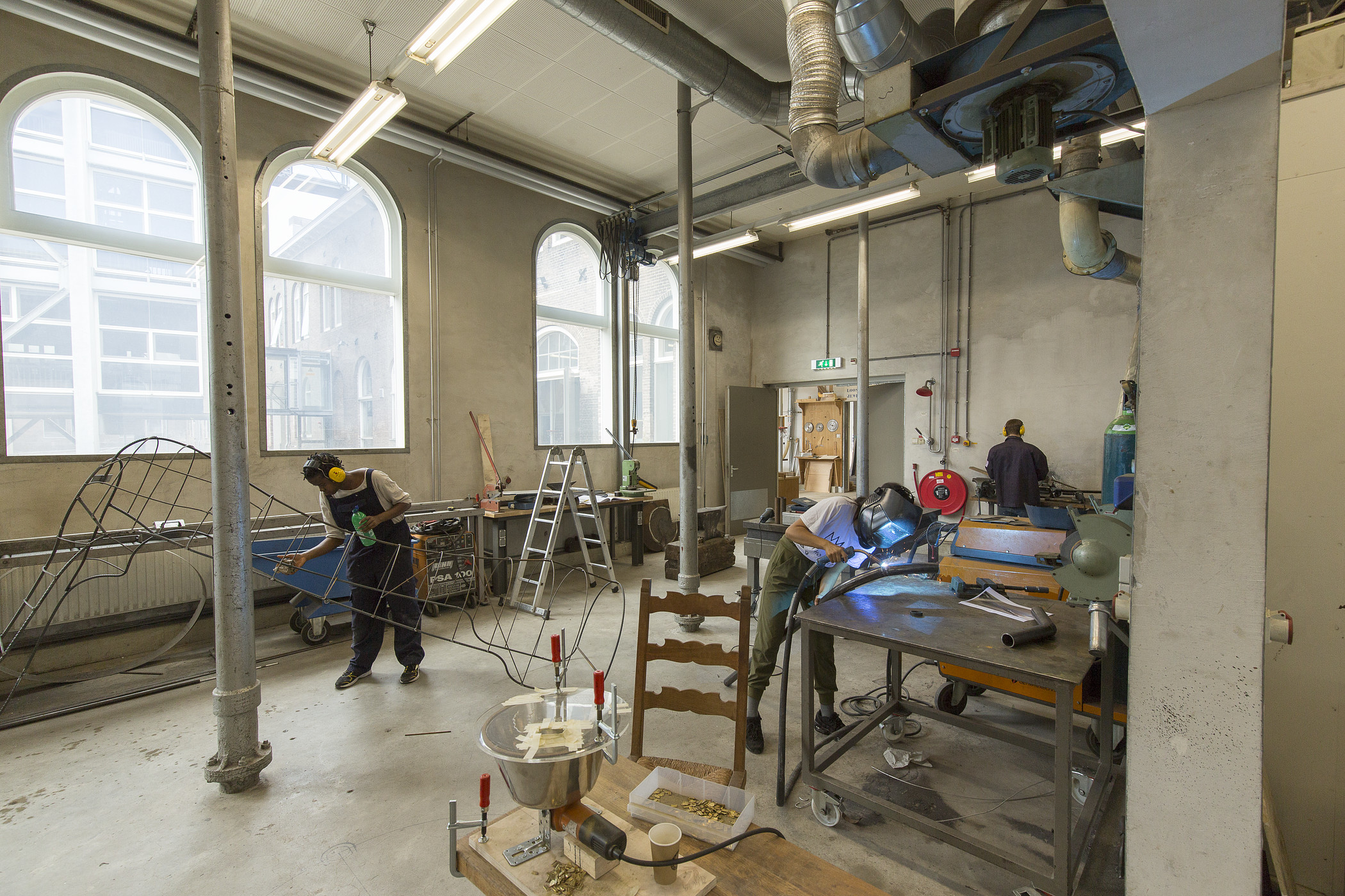 dertig mensen uitnodigen om een kijkje te nemen achter de schermen en informatie en expertise uit te wisselen met de specialisten die hier werken. Er zijn acht werkplaatsen, gericht op: keramiek, elektronica, media, metaal, mallen, verf, print en hout.