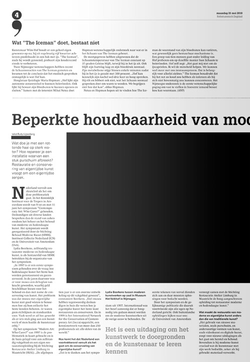 In het Reformatorisch Dagblad, 31 mei 2010 staat een interview met Lydia Beerkens over het behoud van moderne kunst.